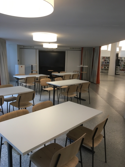 Ausserhalb der bedienten Öffnungszeiten besteht zudem die Möglichkeit, einen Teil der Bücherhalle von 18 bis 23 Uhr zu mieten. Platzkapazität: 100 Personen.